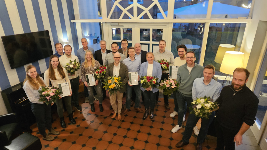 Personen auf dem Bild (v.l.n.r.) Katharina Steuernagel, Mareen Bartz, Michael Kötting, Richard Niehues, Miriam Welsing, Torsten Wolf, Benjamin Elbers, Fabio Winzen, Christoph Nobis, Stefan Brandkamp, Heiner Esser, Stephan Eichner, Nadine op de Hipt, Hans Willi Lynders, David Velmans, Georg Papen, Thomas Keuschen und Lorenz Krause