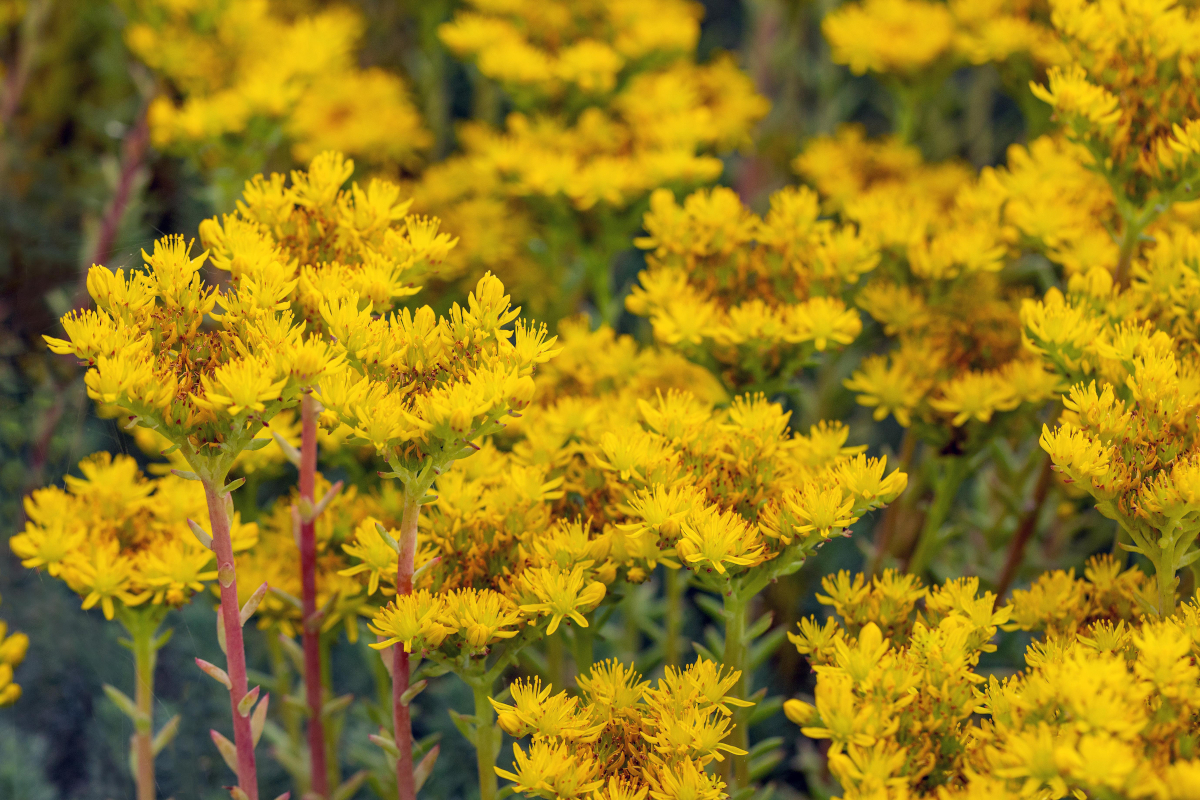 Jetzt haben verschiedene Arten der Gattung Sedum ihren großen Auftritt. Sie begeistern mit leuchtenden Blüten, auf die nicht nur Insekten fliegen. Und auch sonst hat die Gattung für Garten, Balkon oder Topf viel zu bieten. Das beginnt schon bei der Vielfalt ihrer Arten. Allen gemein sind die dickfleischigen Blätter, die der Familie der Dickblattgewächse (Crassulaceae) ihren Namen geben.