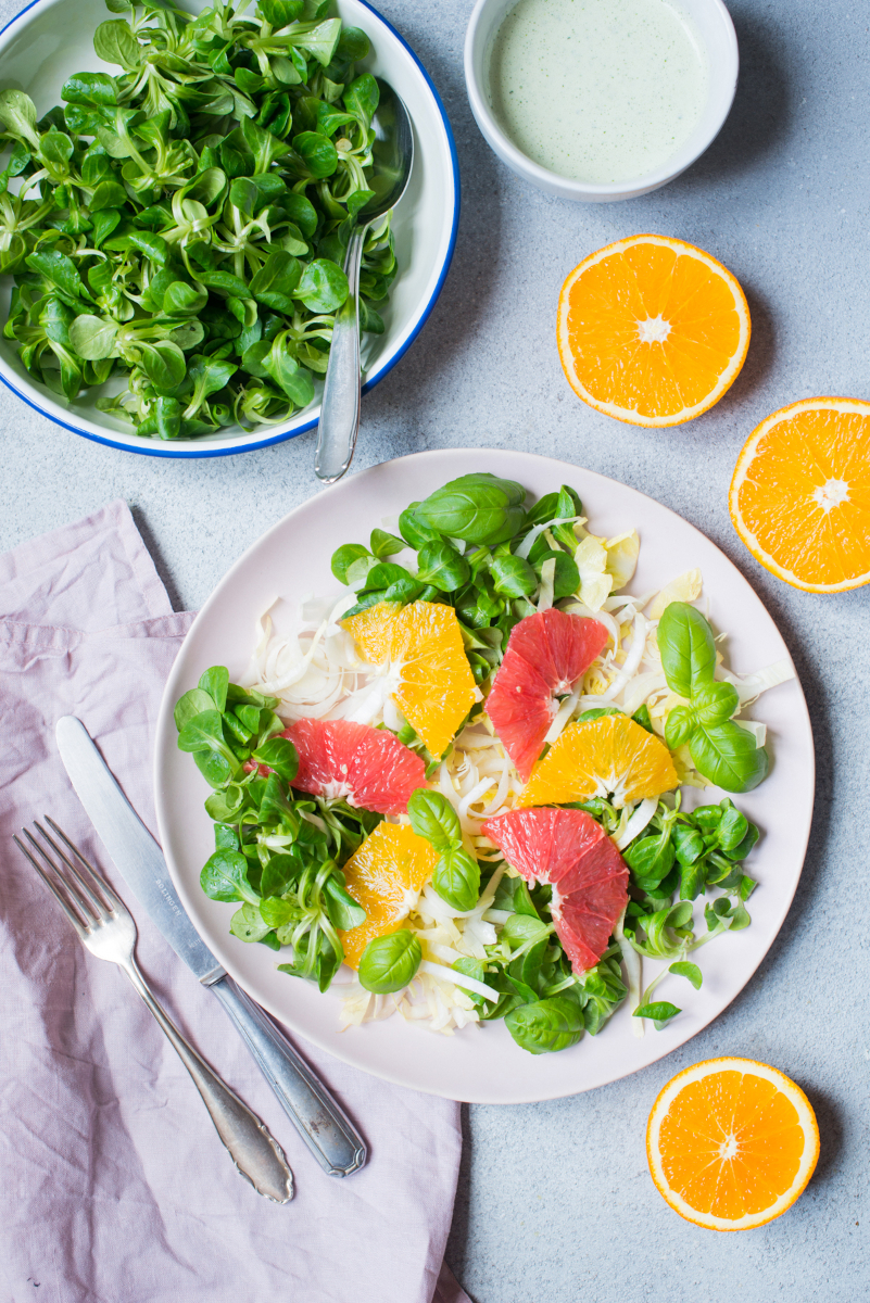 Feldsalat mit Chicorée und Grapefruit