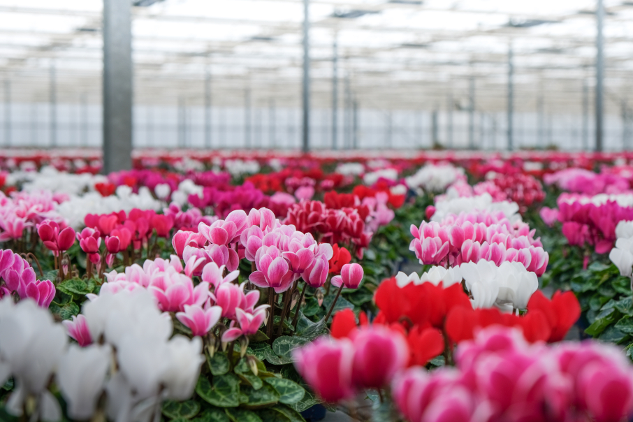 Wenn in der kühlen Jahreszeit die Sehnsucht nach ein wenig Farbe groß ist, führt auch in diesem Jahr an Cyclamen kein Weg vorbei. Früher mitunter als altmodisch verschrien, sind Alpenveilchen heute dank neuer Sorten und Züchtungen als unkomplizierte Dauerblüher für den Garten und die Wohnung sehr gefragt. „Wir vermarkten im Fachhandelsvertrieb seit September Cyclamen in größeren Mengen an unsere Kundschaft. Von den ungewöhnlich warmen Tagen im Oktober abgesehen, war die Nachfrage insgesamt sehr gut“, lautet das Zwischenfazit von Stefan Dünnwald, Bereichsleiter Fachhandelsvertrieb bei Landgard Blumen & Pflanzen, für die bisherige Cyclamensaison 2023/24. „Die kontrollierten Wachstumsbedingungen im Gewächshaus und neue Züchtungen garantieren eine gute Haltbarkeit und Blühfreude der Pflanzen. Und dank der großen Vielfalt an Farben, Blütenformen und Wuchsgrößen vom Sechs-Zentimeter-Micro bis zum Solitär in der 23er-Schale findet heute garantiert jeder seine Lieblingssorte. Besonders als Outdoorpflanze wird die Cyclame immer stärker nachgefragt.“