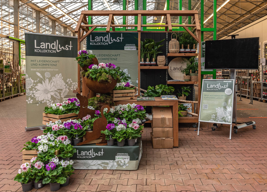 Landgard hat der Kundschaft auf den Frühjahrs-Ordertagen wie gewohnt ein attraktives Sortiment mit Baumschulartikeln, Topfpflanzen, Saisonware, Convenience sowie Deko & Floristikbedarfsartikeln präsentiert. Den stationären Teil der Frühjahrs-Ordertage in Oberhausen hat Landgard auch dazu genutzt, Konzepte, Kooperationen und Marken zu präsentieren, mit denen Verbraucher*innen für hochwertige grüne Produkte begeistert werden können. Dazu gehört auch die Landlust-Kollektion, für die Landgard und Landlust, das marktführende Landmagazin mit großem Gartenschwerpunkt, eine langfristig angelegte Partnerschaft initiiert haben. Darüber hinaus wurden Verkaufskonzepte für Baumschulware und die Fachhandelskonzepte „Love is in the Air“ und „Feiert Frauen“ vorgestellt. Das Jahresprogramm 2023 der „Landgard-Kostbarkeiten“ zeigte, wie Landgard regelmäßig neue Sorten oder Raritäten für die Bereiche Indoor und Garten in den Fokus rückt, die auch erfahrene Pflanzenkenner*innen nicht überall finden können. Diese Kostbarkeiten sind entweder nur in geringen Stückzahlen oder in besonderen Qualitäten teils exklusiv im Landgard-Fachhandel erhältlich.