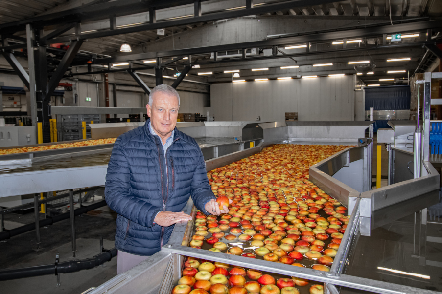 Landgard hat in Bornheim-Roisdorf eine neue Wasserentleerungs-Anlage für Kernobst in Betrieb genommen, die die Leistungsfähigkeit des Standorts weiter steigert. Die Anlage arbeitet flexibel, effizient und besonders schonend. Denn durch die Entleerung in Wasser werden Druckstellen deutlich reduziert und die Produktqualität steigt. „Die neue Anlage verfügt über drei verschiedene Packoptionen, die wir gleichzeitig nutzen können. Wir haben eine Silcoplan-Maschine, in der Pappschalen mit Äpfeln oder Birnen befüllt, verpackt und für den Handel ausgezeichnet werden können. Hinzu kommt eine Foodtainer-Anlage für Dehnfolie und eine Verpackungslinie für Beutelware“, so Stefan Rütten, Geschäftsführer von Landgard West Obst & Gemüse.