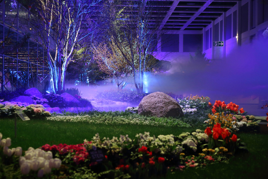 Ein solches Großprojekt kann man natürlich nur perfekt inszenieren, wenn alle beteiligten Teams übergreifend optimal zusammenarbeiten. Die Blumenhalle ist für die Mitarbeitenden der verschiedenen Gewerke immer ein besonders schönes Projekt zum Jahresstart. Alle sind hochmotiviert, für die Besucher*innen der Grünen Woche gemeinsam eine außergewöhnliche Halle hinzustellen, die einfach anders ist als alles, an dem die Teams im weiteren Jahresverlauf arbeiten.