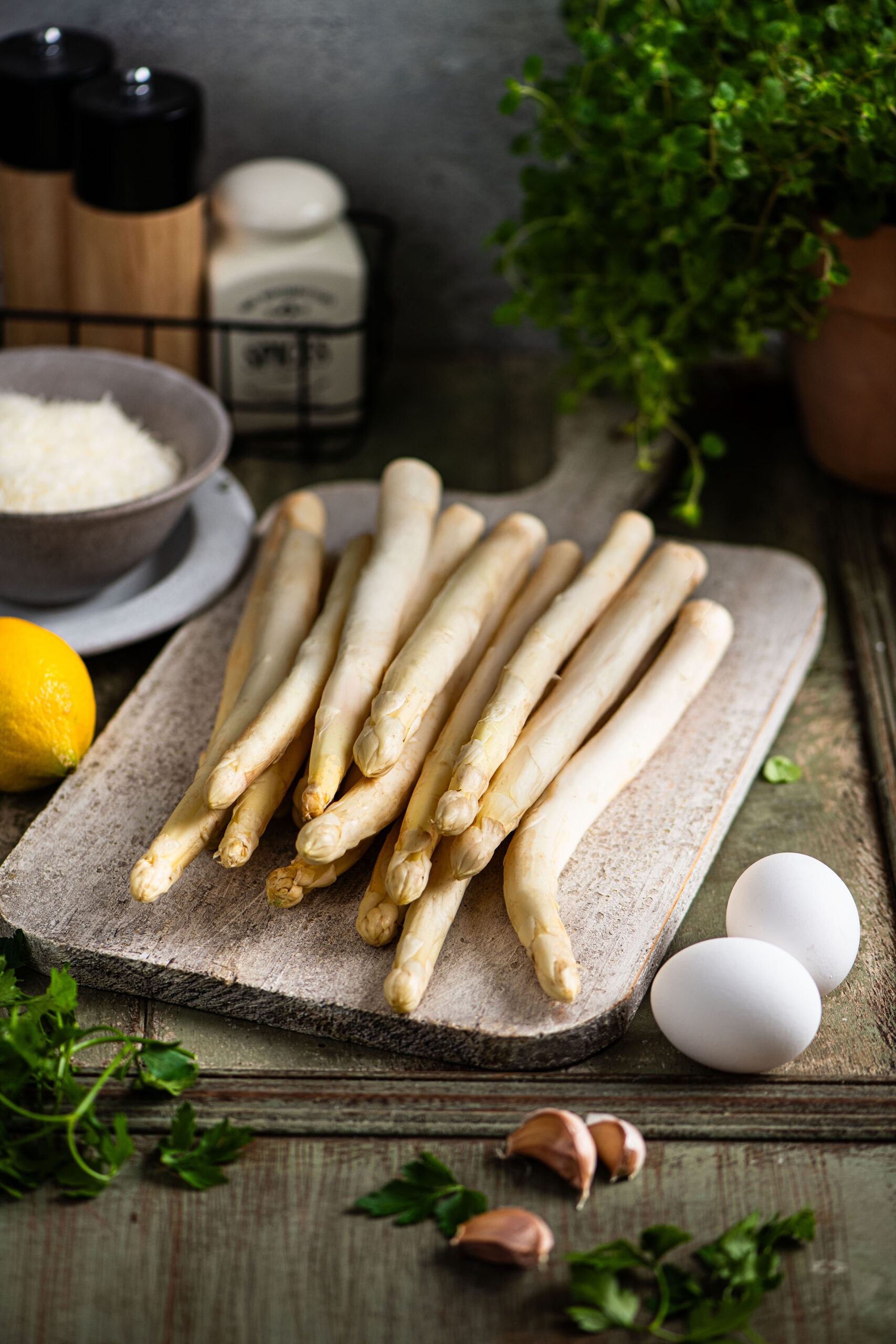 Umso mehr freut man sich über die Vielfalt kulinarischer Genüsse, die sich mit ihm verbinden. Der nach wie vor beliebte Klassiker ist die Kombination mit Kartoffeln, zerlassener Butter oder Sauce Hollandaise und Schinken. Doch Spargel bietet weit mehr. Er schmeckt auf dem Flammkuchen genauso gut wie in der Quiche, im Risotto oder in Pasta-Gerichten. Hervorragend harmoniert der weiße auch mit dem grünen Spargel, der mehr Würze mitbringt. Auch beliebt ist es, die weißen Stangen im Ofen zu rösten – dann entfalten sie einen intensiveren, fein nussigen Geschmack – noch köstlicher in der Variante mit Parmesankruste. Wichtig: Spargel sollte man nach dem Kauf möglichst schnell verbrauchen, denn frisch gestochen schmeckt er am besten. Geht das nicht, so kann man ihn in ein feuchtes Küchentuch gewickelt für ein bis zwei Tage im Gemüsefach des Kühlschranks aufbewahren.